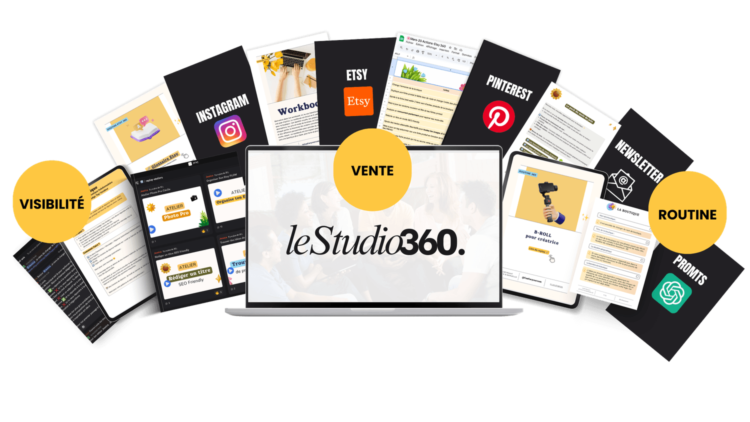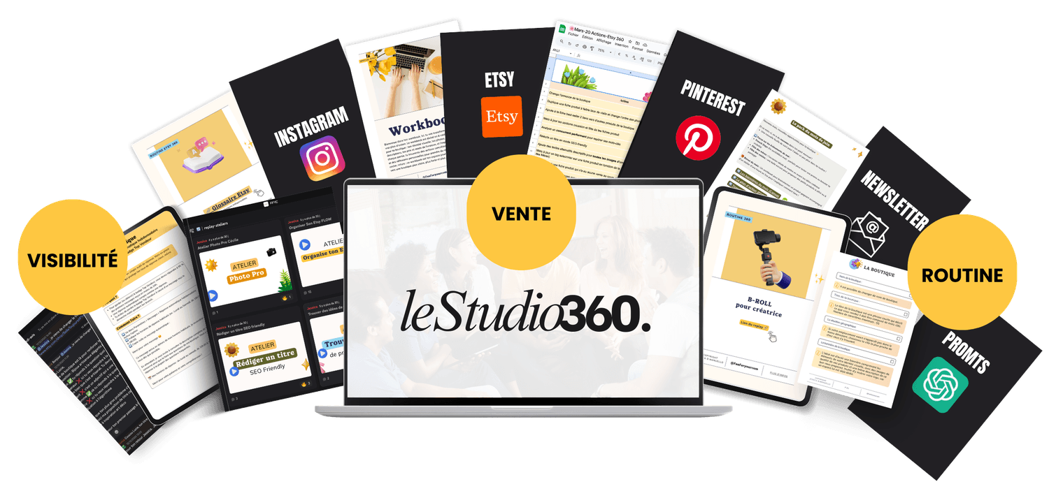 Que tu sois débordée, en manque d'inspirations, ou que tu ne saches plus par où commencer, dans Le Studio 360, tu sauras exactement comment rendre ta boutique visible, communiquer efficacement et obtenir des ventes régulières.